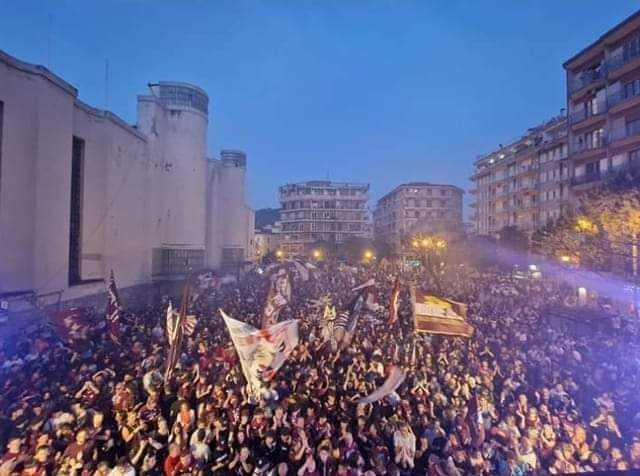 Un corteo. Migliaia di persone in strada dietro ad un drappo che lancia un messaggio chiaro “Appartenenza”. Sono stati in migliaia a colorare le strade della città per festeggiare i 104 anni della Salernitana. Il popolo granata ha dato vita ad un corteo che da Piazza della Concordia ha raggiunto Piazza Casalbore. Tanti i cori che hanno riecheggiato nel cuore della città, con il noto “State tutti attenti che” lanciato dallo storico leader Ciccio Rocco.
