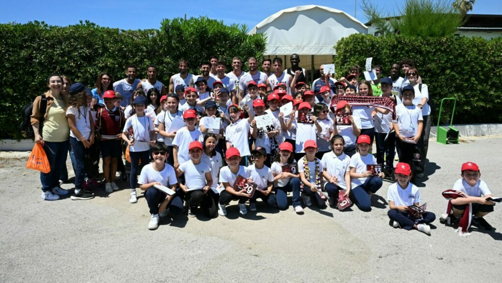 Al centro sportivo i vincitori del progetto "Salernitana for education"...