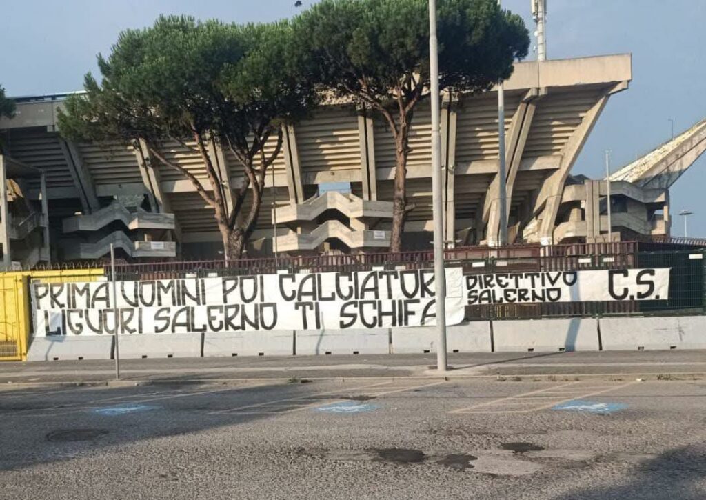 “Prima uomini poi calciatori”, lo stesso concetto ribadito da Faggiano in conferenza stampa, questo il messaggio degli ultras granata, “Salerno ti schifa”, il duro seguito del testo affisso in serata nei pressi dell’Arechi. Presa di posizione netta, decisa, da capire ora se la società proseguirà o meno nella trattativa.