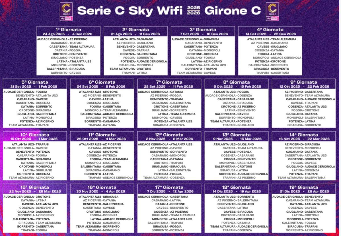 La Salernitana conosce il proprio destino. Si partirĆ dalla sfida con il Siracusa il giorno 24 agosto. Poi tutto il cammino: la prima trasferta con il Cosenza, il derby con la Cavese il 5 ottobre, il 30 novembre con il Benevento.